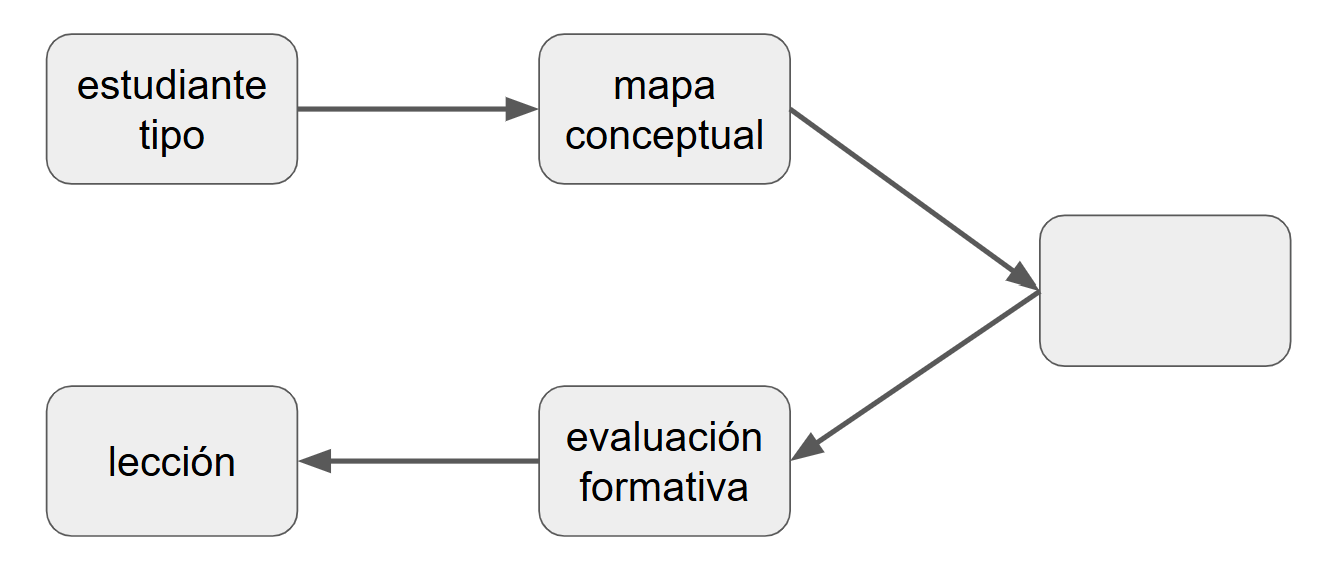 cinco nodos. Un estudiante tipo genera un mapa conceptual. Desde este,